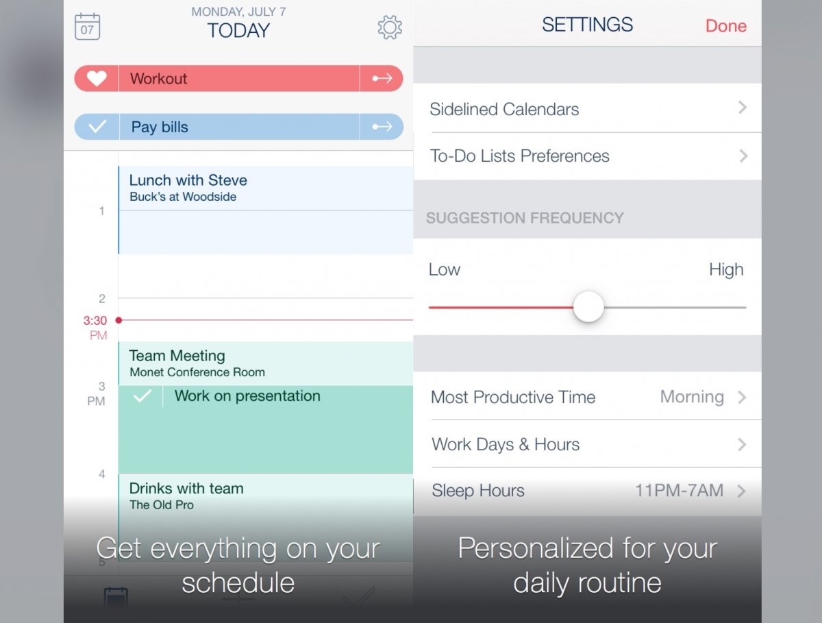 Timeful: Ứng dụng quản lý thời gian này đóng vai trò là một trung tâm nhắc việc cá nhân, nhắc nhở lịch hẹn hoặc việc cần làm. Nó đặc biệt hay ở chỗ có thể sắp xếp các công việc sắp tới của cá nhân dựa trên mức độ ưu tiên, thói quen và lịch làm việc chung. Mới đây, Google thông báo họ đã mua lại công ty sở hữu ứng dụng này.