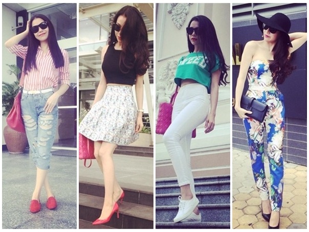 Ca sĩ Hồ Ngọc Hà: Nữ hoàng giải trí sở hữu một phong cách quyến rũ, luôn sáng tạo khi xuất hiện trên sân khấu âm nhạc, lộng lẫy trên thảm đỏ và cực kỳ phá cách lúc xuống phố. Nữ ca sĩ tạo nên những ấn tượng đáng nhớ về hình ảnh năng động, hiện đại, đi kèm với những bộ cánh cực chất. Sự đầu tư thích đáng giúp nữ ca sĩ trở thành một trong những biểu tượng thời trang hàng đầu Vbiz.