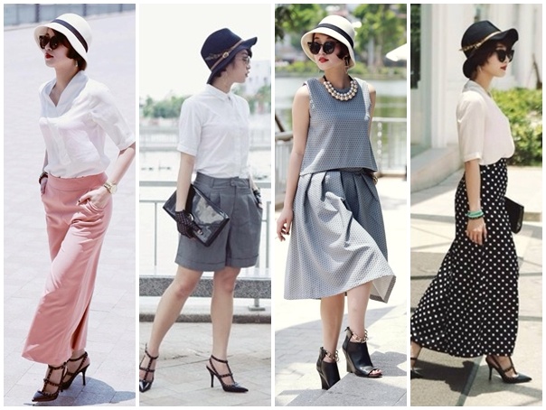 | Cựu hot girl Mi Vân: Sau thời gian ly hôn chồng, Mi Vân thử sức ở lĩnh vực kinh doanh thời trang. Hình ảnh của bà mẹ một con cũng bắt đầu có sự thay đổi, chững chạc và nữ tính hơn. Khác với các tín đồ thời trang đa phong cách, Mi Vân trung thành với kiểu mốt duy nhất là trào lưu cổ điển. Trang phục của cựu hot girl Hà thành đi liền với những kiểu cách của nhiều thập niên trước như dáng quần suông, họa tiết chấm bi, mốt áo cao cổ, mũ vành nhỏ... Phong cách hoài cổ được khen ngợi là phù hợp với hình ảnh thanh lịch, tao nhã mà cô đang hướng đến. |