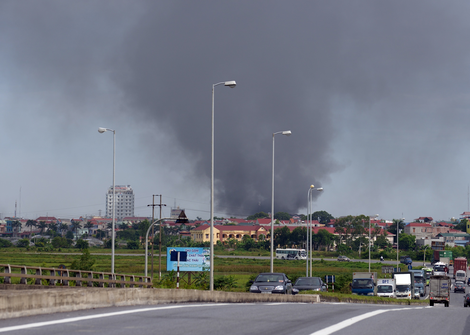 Vụ cháy xảy ra vào khoảng 5h30 tại lô đất số 19 thuộc cụm công nghiệp Võ Cường, phường Võ Cường, thành phố Bắc Ninh. Hiện trường nhìn từ cao tốc Hà Nội - Lạng Sơn cách đó hơn 2km.