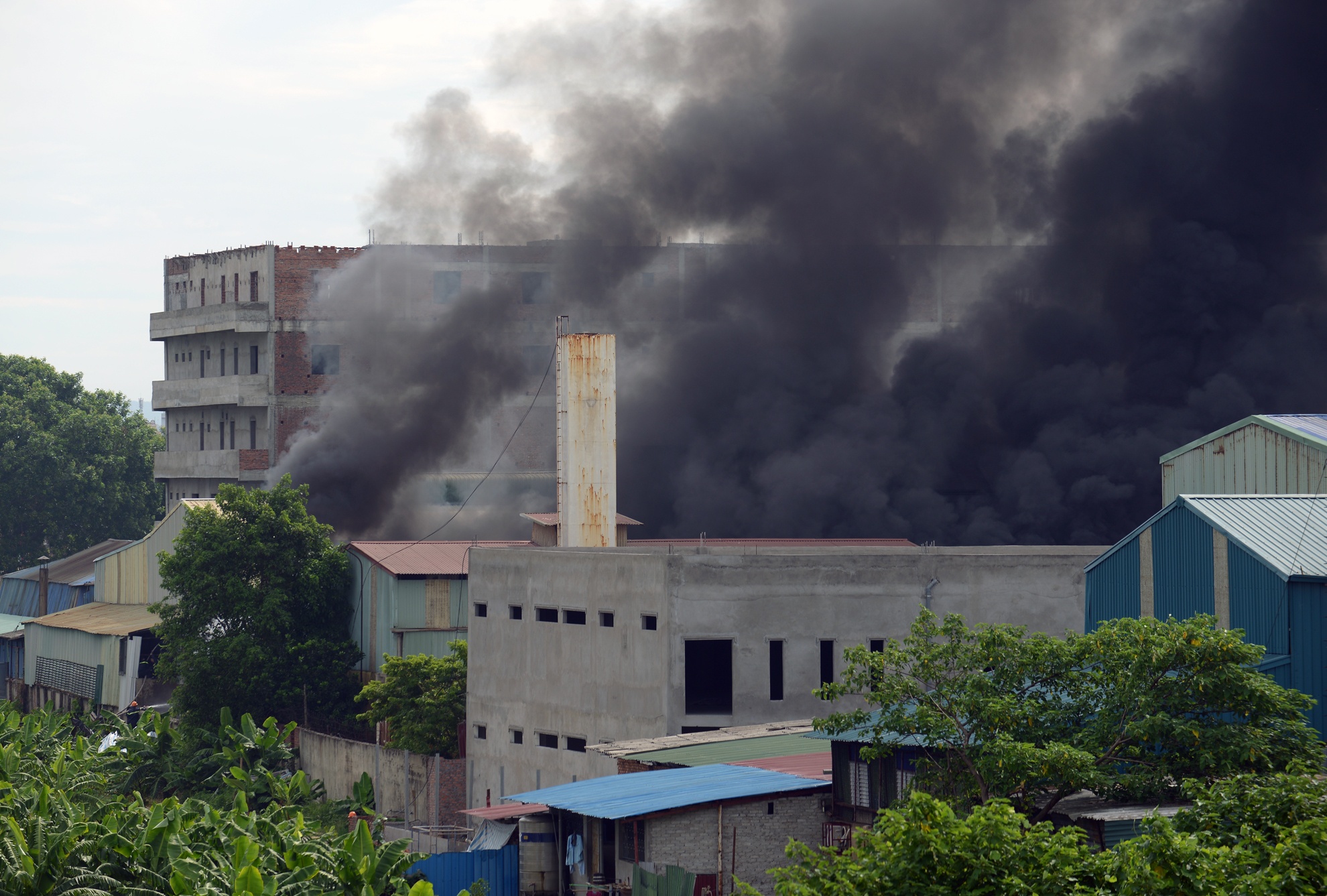 Hiện trường nhà kho bị cháy tại tầng 1, có độ sâu hơn 30 m theo dạng hình ống nên rất khó tiếp cận để dập lửa. Đây là khu đất được thuê bởi một đơn vị may mặc bảo hộ cho các khu công nghiệp và một đơn vị sản xuất khuôn nhựa đựng linh kiện điện tử cho nhà máy Samsung.