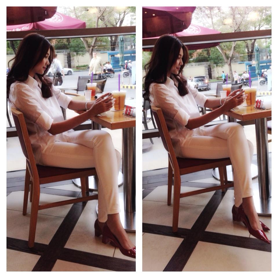 Mẫu quần lai cao cũng rất phù hợp với bạn nữ có ngoại hình không mấy cao ráo như Văn Mai Hương.