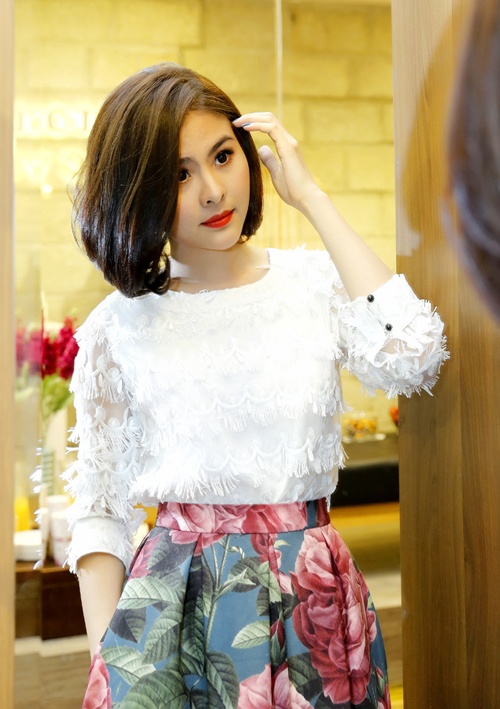 Tóc bob ngang vai: Kiểu tóc bob được nhiều sao Việt lăng xê vào mùa hè 2014. Tiếp nối trào lưu đang được yêu thích, Minh Hằng duy trì tóc bob ngang vai vào đầu hè 2015. Hình ảnh của nữ ca sĩ năng động, hiện đại hơn khi chọn tóc hợp xu hướng.