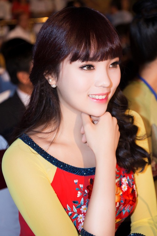 Tóc mái ngang: Hoa hậu Kỳ Duyên được khen ngợi là duyên dáng, xinh đẹp khi thay đổi kiểu tóc mái ngang hiện đại. Người đẹp trông lạ lẫm, mới mẻ khi ứng dụng các kiểu mốt uốn xoăn, suôn dài hoặc búi sang trọng.