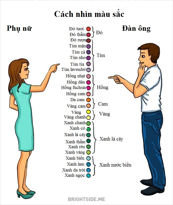 | Theo Bored Panda, cách nhận diện màu sắc giữa phái mạnh và phái đẹp luôn có sự khác biệt rất lớn. |