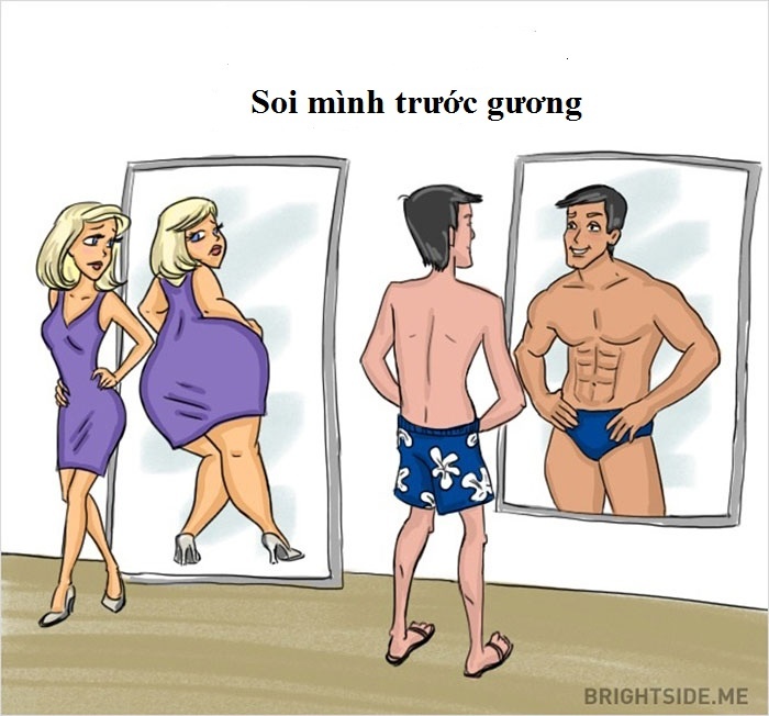 | Dù sở hữu thân hình chuẩn, phụ nữ vẫn cho cho rằng mình béo. Ngược lại, nam giới lại luôn nghĩ về vể ngoài săn chắc 6 múi. |