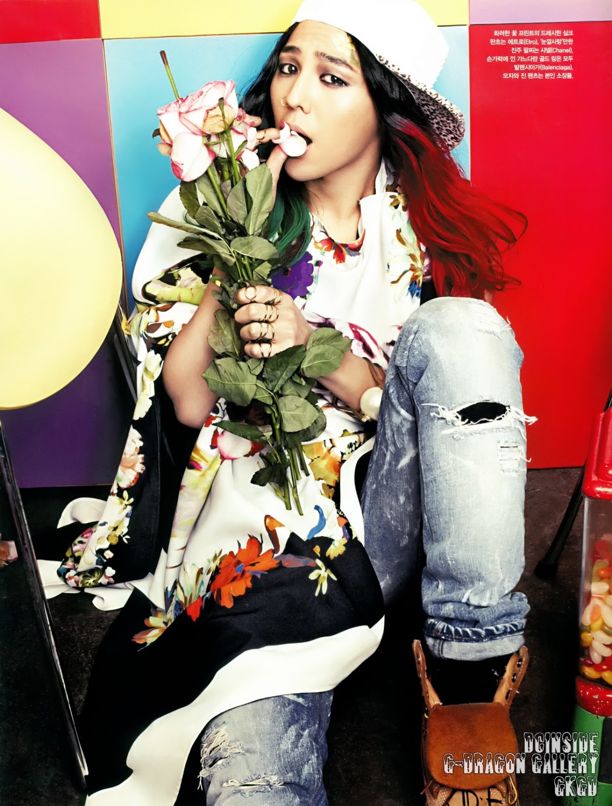 | Bộ ảnh G-Dragon trên tạp chí Vogue số tháng 8/2013 cũng được coi là một bộ ảnh kinh điển của G-Dragon với vô số tạo hình độc đáo, thời trang. |