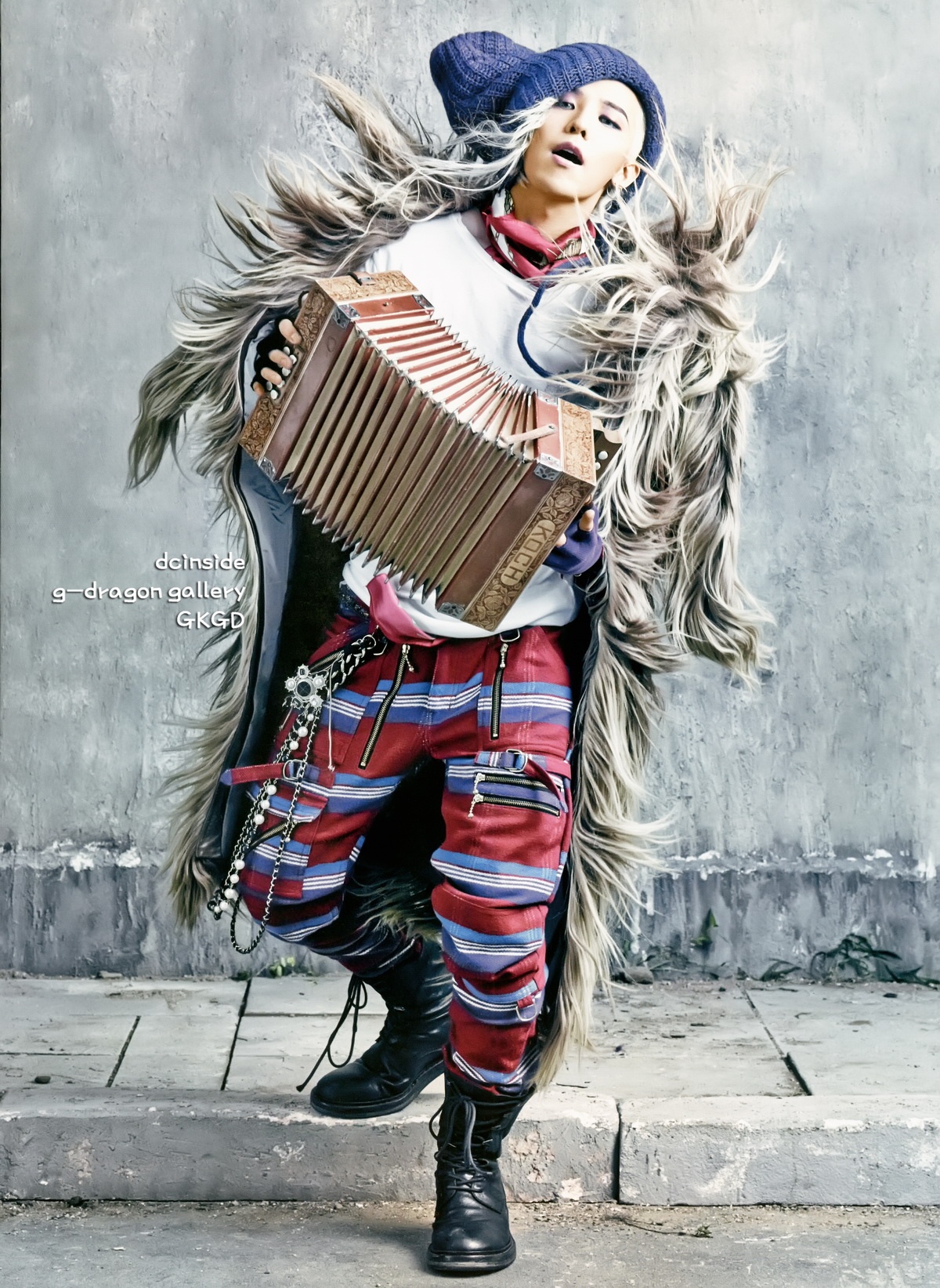| Tạo hình "người nghệ sĩ lang thang" của G-Dragon trên Vogue tháng 8/2013. |
