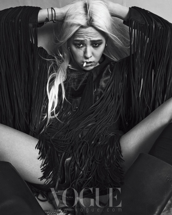 | G-Dragon gắn liền với hình tượng phi giới tính. Hình ảnh sexy trên Vogue này dễ khiến người xem nhầm anh là một cô người mẫu cá tính nào đó. |