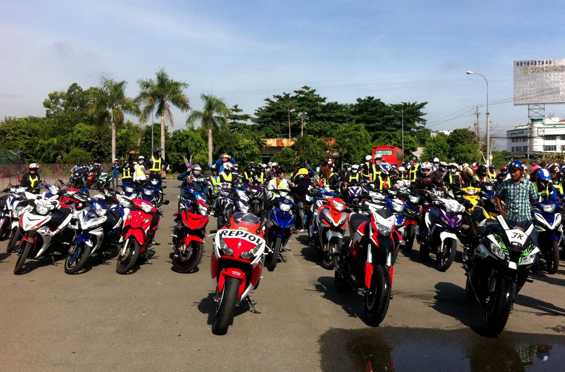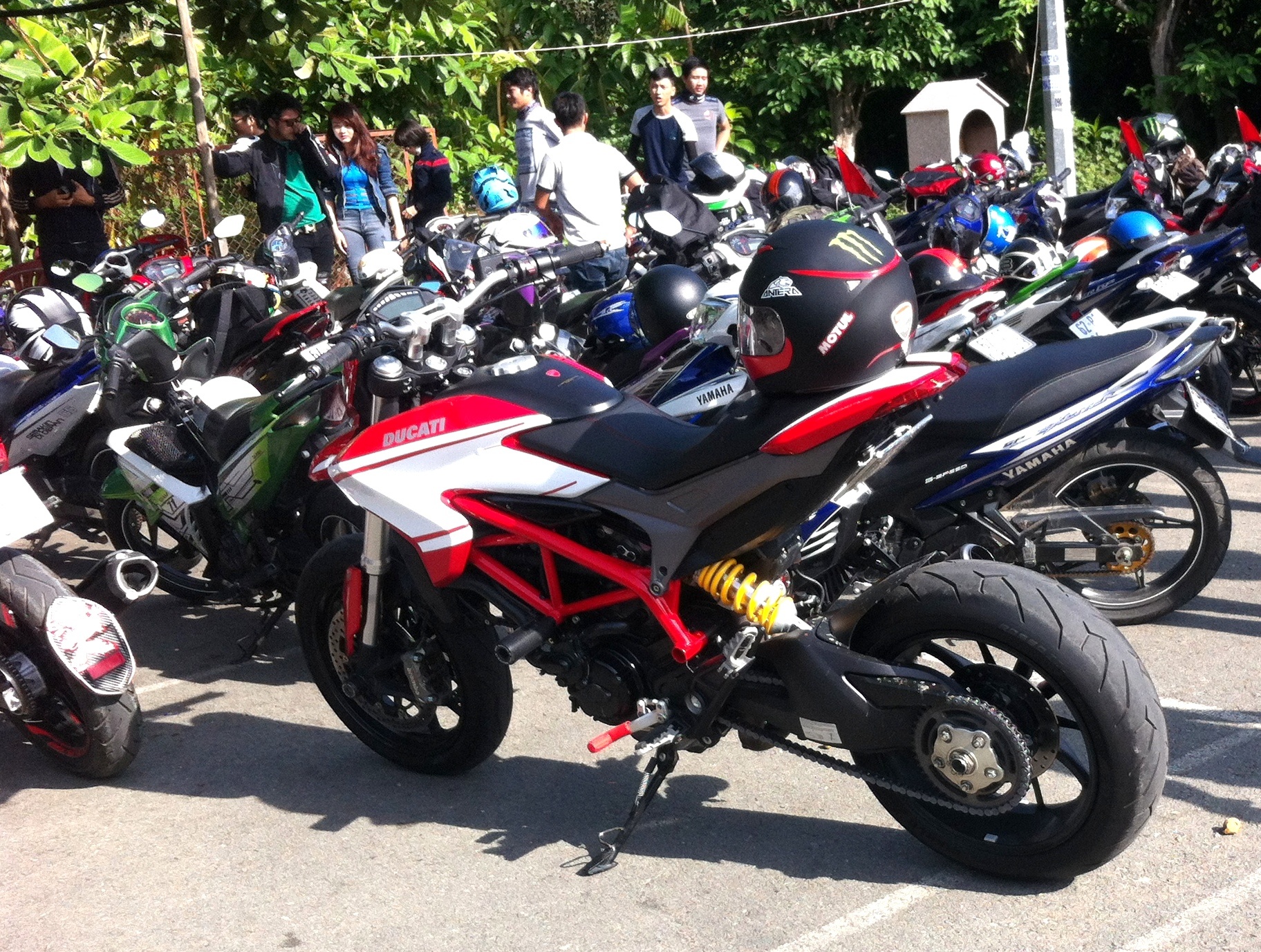 Bên cạnh những chiếc Exciter, đoàn còn có sự tham gia của xe phân khối lớn như Ducati Hypermotard, Honda CBR 1000RR. Kawasaki ZX10R.