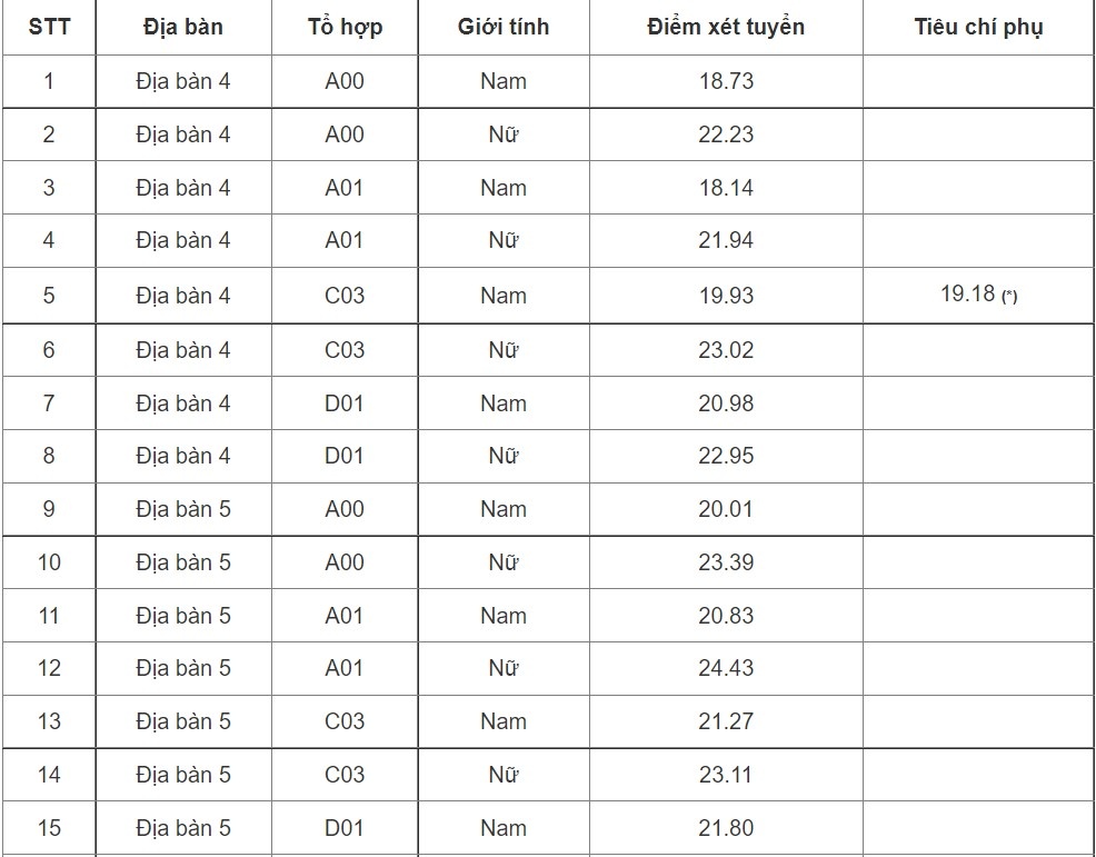 Điểm chuẩn cụ thể vào trường như sau: