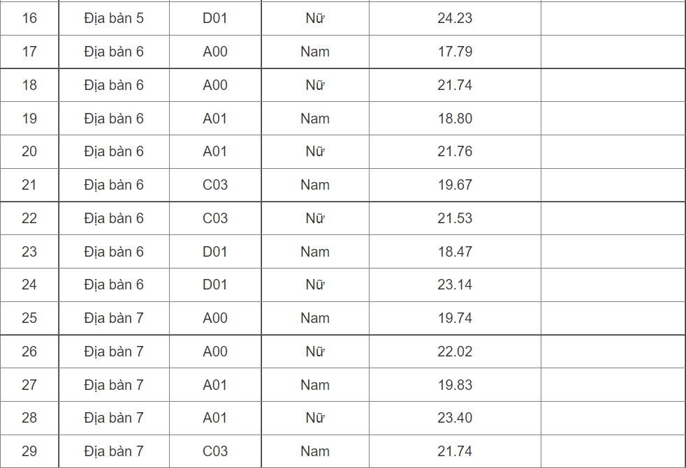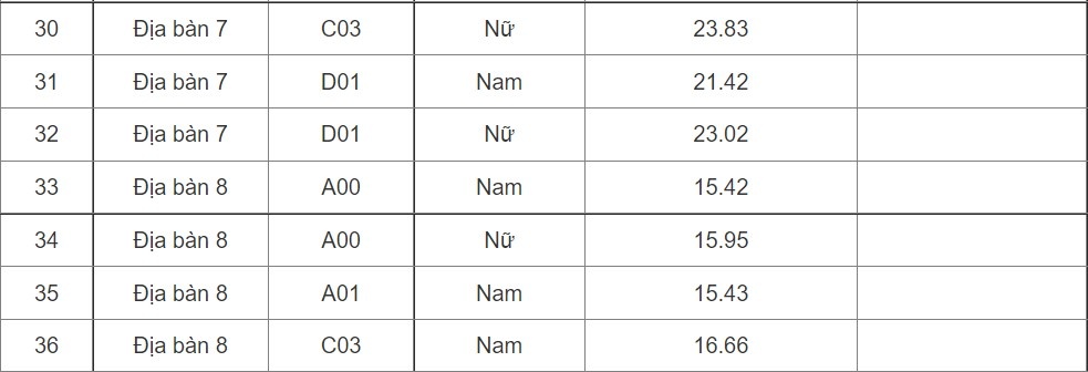 (Điểm chuẩn các trường từ 20 trở về trước: Xem bên dưới bảng;