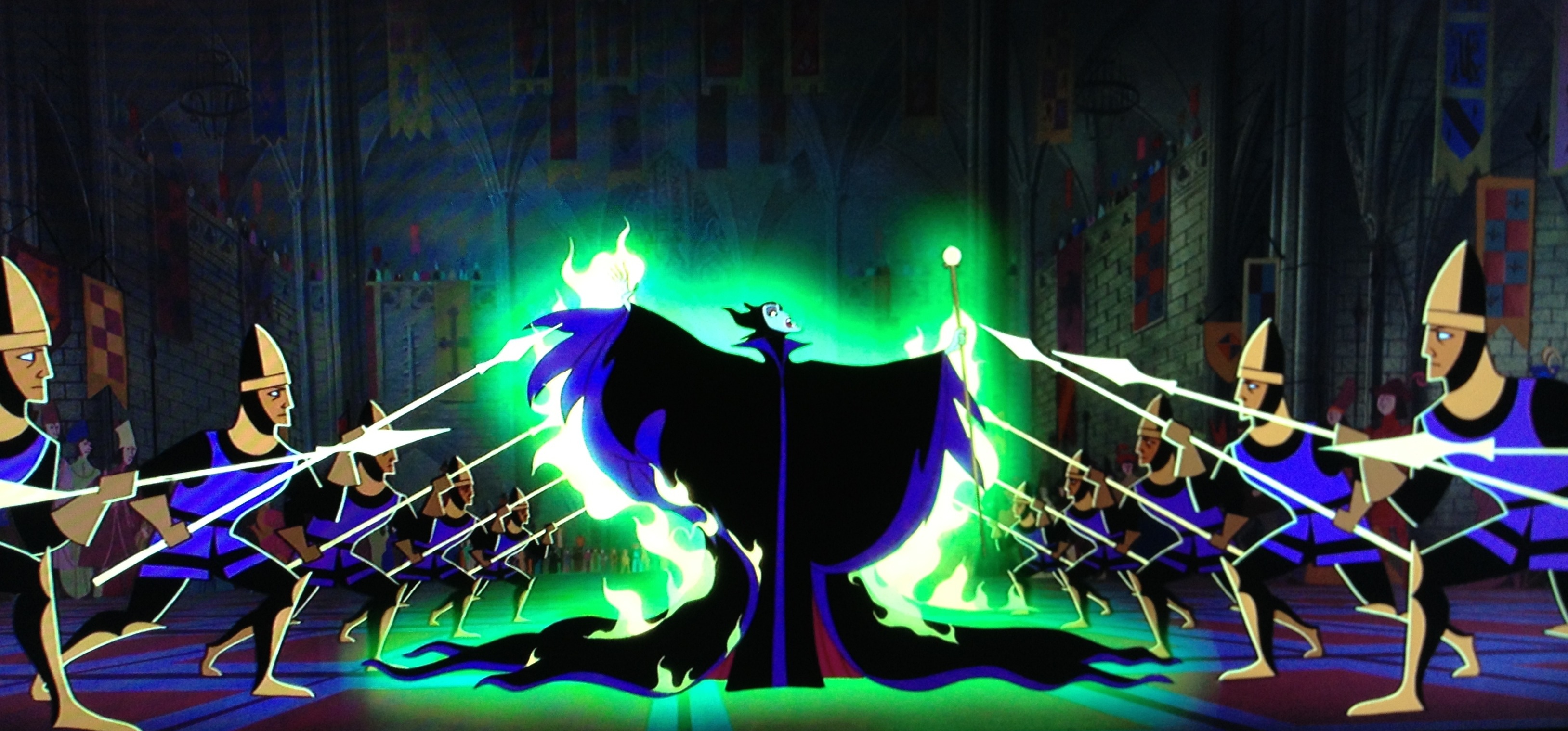 Ngọn lửa phát ra từ chiếc áo choàng của Maleficent được dựa trên một bức minh họa từ nước Séc thời trung cổ mà Marc Davis, họa sĩ huyền thoại của Disney, tình cờ nhìn thấy trong bộ sưu tập của gia đình ông. |