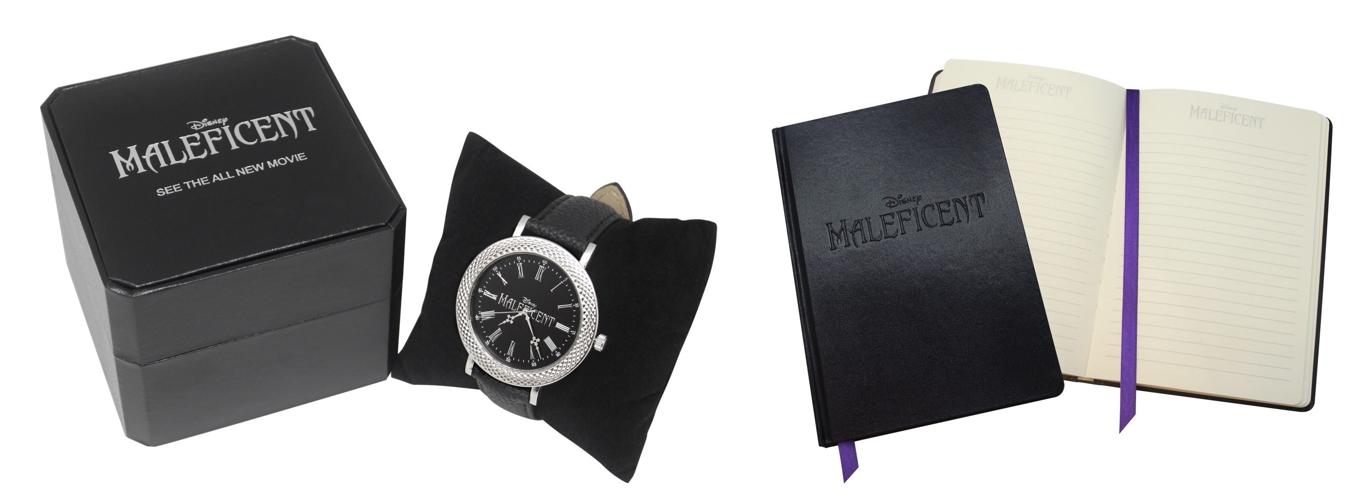 | Hai chiếc đồng hồ đeo tay và hai sổ tay là những món quà từ bộ phim Maleficent của Angelina Jolie. |