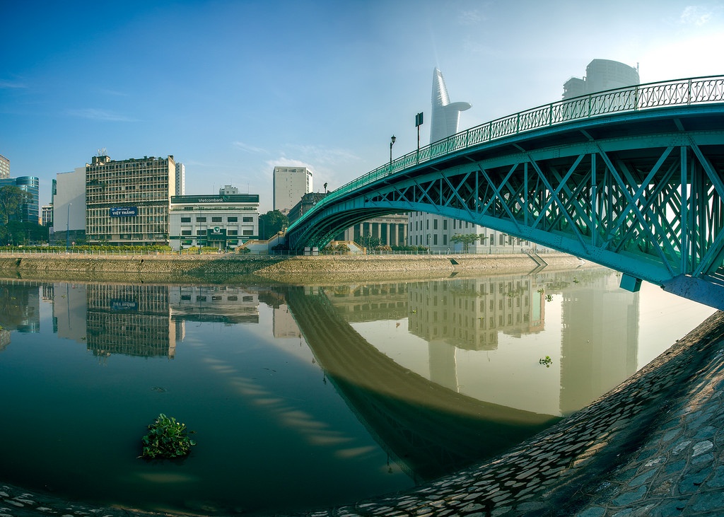 Cầu Mống bắc qua sông Bến Nghé, nối liền quận 1 và quận 4. Cầu làm theo kiểu vòng mống cho nên dân gian gọi là cầu Mống. Hiện cầu Mống đã trở thành cầu đi bộ và là điểm hẹn hò lý tưởng ở quận 1. Ảnh: Nhiepanhfree. |
