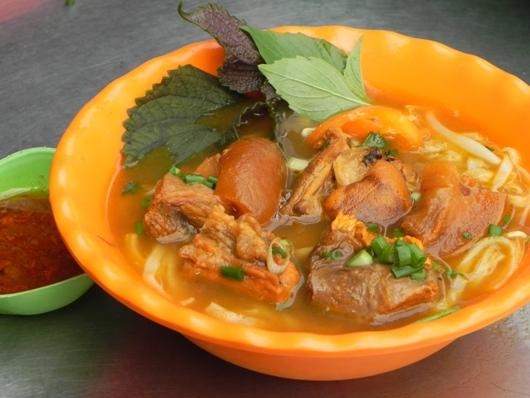 | Sự kết hợp giữa cà ri dê và hủ tiếu mang đến cho người Sài Gòn món hủ tiếu gần như không nơi nào có. Do nhiệt độ chín khác nhau, món ăn này thường tách thành hai tô khi dọn cho khách. Ảnh: Huỳnh Hằng. |