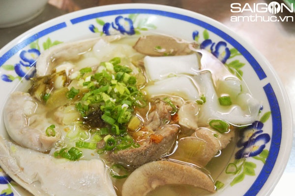 Những miếng bánh vuông vức trong hủ tiếu hồ hay bánh canh hồ của người Tiều thường khiến những ai lần đầu thưởng thức bất ngờ. Những miếng lòng khìa cải chua trong món ăn cũng mang đến nhiều thích thú. Ảnh: Bepgiadinh.