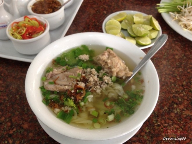 | Hủ tiếu sườn non có cách chế biến khá đơn giản. Sau khi mua về, rửa sạch, bạn hầm sườn với củ cải trắng tên lửa nhỏ. Khi nước dùng có độ ngọt và sườn đạt độ mềm nhất định, nêm nước dùng vừa ăn rồi chan vào tô đã có sẵn hủ tiếu là bạn có thể thưởng thức. Ảnh: Saomai.ng98. |