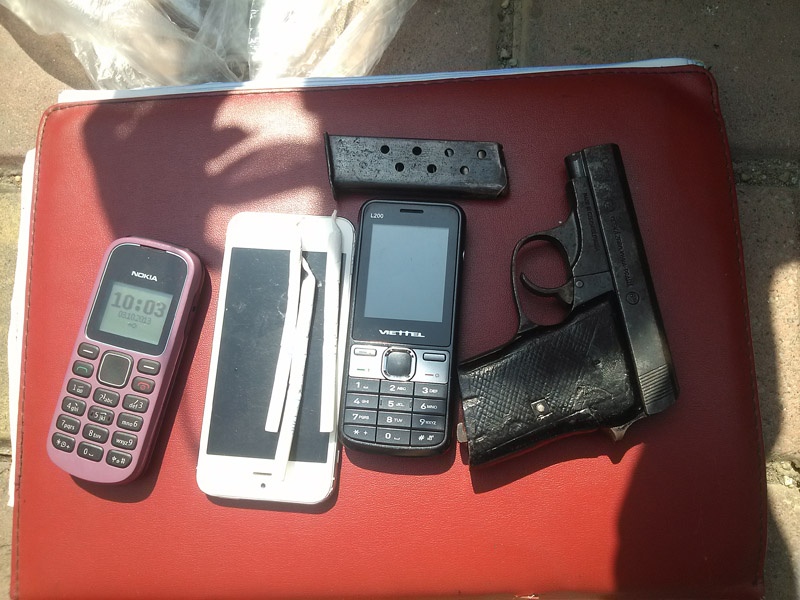 | Khẩu súng phát hiện trong túi quần của Tú. |