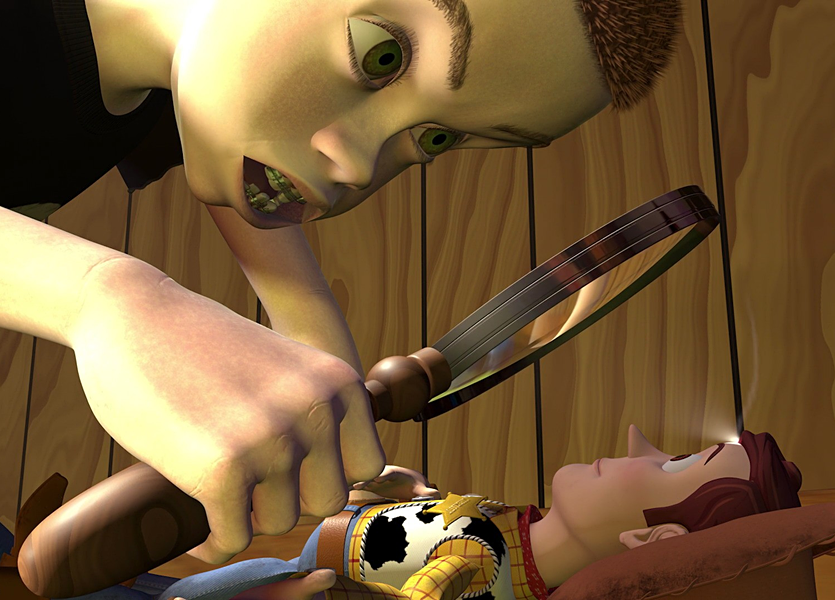 | Cảnh Woody bị tra tấn bởi chiếc kính lúp soi dưới ánh sáng mặt trời bị cắt vì không phù hợp với khán giả nhỏ tuổi. |