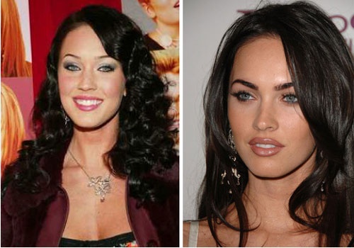 | Megan Fox trông thay đổi khá nhiều khi tô đậm lông mày (ảnh phải). |