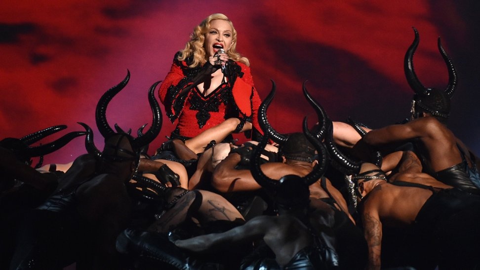 Madonna đem cả concept trong MV Living for Love của cô lên sân khấu Grammy lần thứ 57. Lấy hình tượng dũng sĩ đấu bò tót, nữ hoàng nhạc pop thực sự khiến cho khán phòng trở nên cực kỳ sôi động qua màn vũ đạo hết sức cầu kỳ.