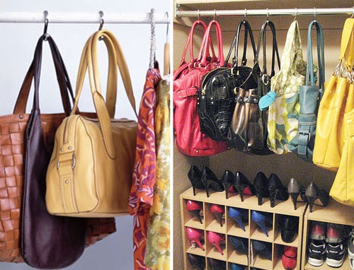 | 2. Treo túi xách lên những chiếc móc hình chữ S để tiết kiệm diện tích. |