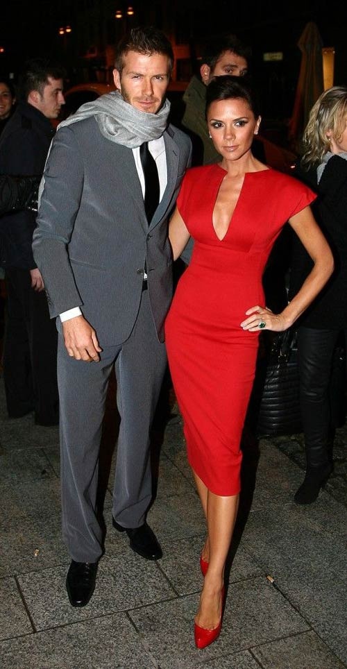 | Trong khi Beck gây ấn tượng khi mặc vest và quàng khăn thì Beck ghi điểm với chiếc váy đỏ ôm sát và cổ áo xẻ sâu gợi cảm. |