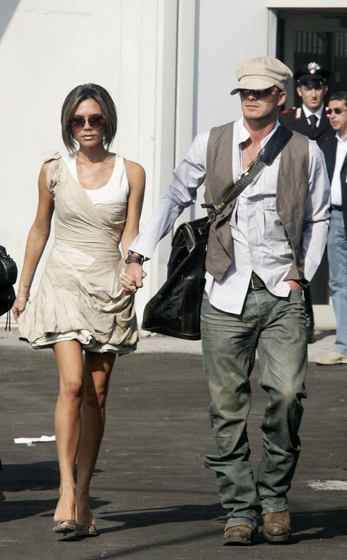 | Ngày 7/9/ 2006, Venice, Italy. Vic lúc này đã để tóc bob, đôi vợ chồng ăn mặc rất phong cách với tông màu đồng điệu. |
