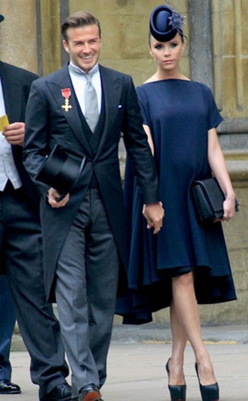 | Vic mang thai cô con gái thứ 4 cùng Beck tới tham gia đám cưới hoàng gia tháng 4 năm 2011. Dù mang thai nặng nề nhưng bà Beck vẫn cực kỳ đẳng cấp với sự lựa chọn thời trang của mình. |