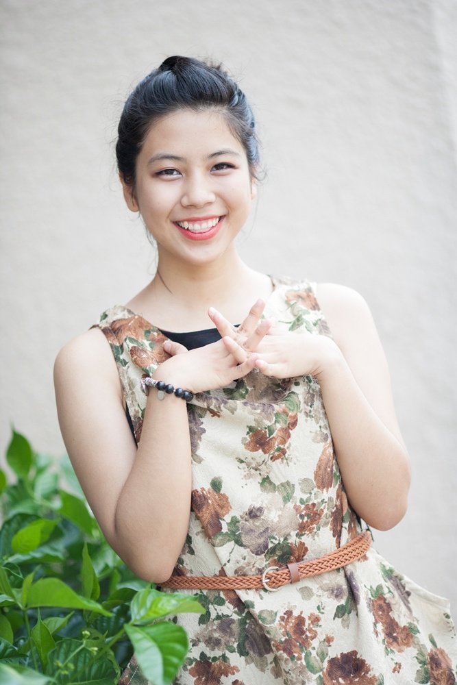 | Nguyễn Đặng Hồng Như, sinh viên năm nhất, khoa Quan hệ quốc tế - ĐH Khoa học Xã hội & Nhân văn. Đôi mắt to tròn là điểm nhấn trên khuôn mặt của Hồng Như. |
