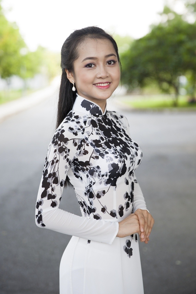 | Nữ sinh Phạm Thị Thu Luận - sinh viên năm 2, khoa Quản trị Kinh doanh, ĐH Kinh tế - Luật mang vẻ đẹp dịu dàng. Đêm chung kết Duyên dáng sinh viên Đại học Quốc gia TP HCM sẽ diễn ra tối 28/5 tại hội trường đại học này. |