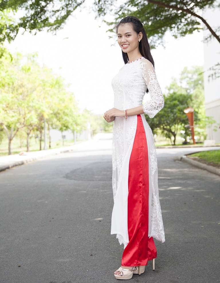 | Vóc dáng năng động, tự tin của Doãn Thị Huệ, sinh viên năm 2, khoa Hệ thống thông tin, ĐH Kinh tế - Luật. |