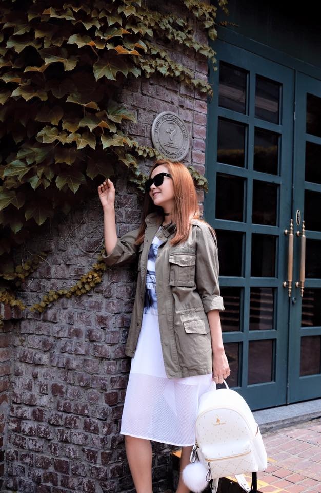 Áo khoác military: Tương tự như denim jaket, mẫu áo cá tính này cũng rất hợp với các kiểu váy, áo thun cho mùa thu.