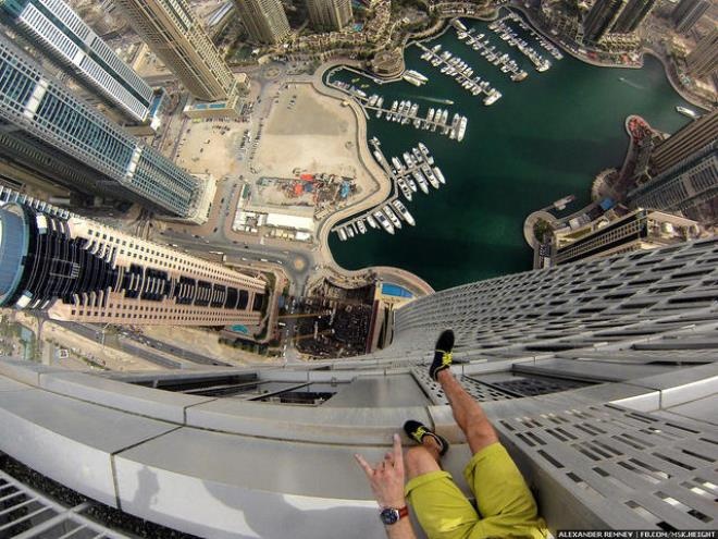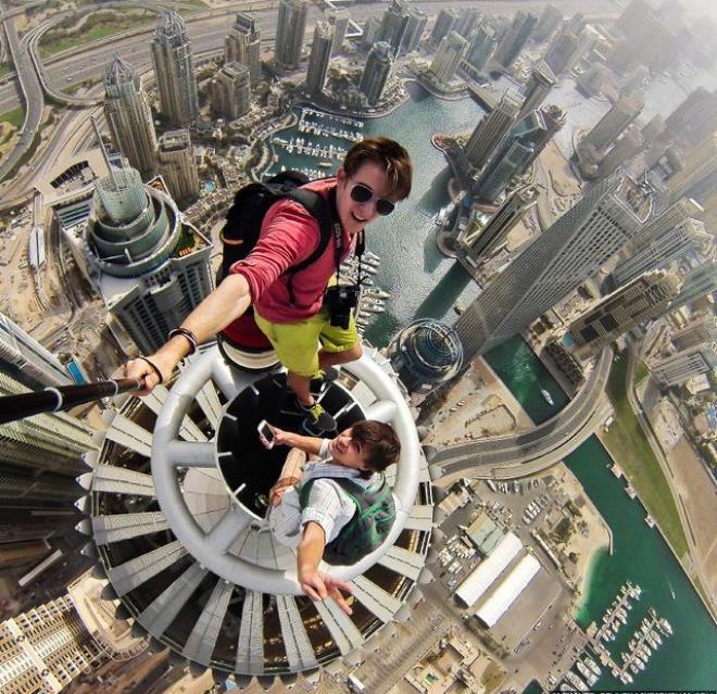 Chụp ảnh tự sướng và chinh phục độ cao là hai trào lưu được giới trẻ thế giới đặc biệt yêu thích những ngày gần đây. Nhờ đó, hàng loạt các bức hình độc đáo, nguy hiểm ra đời. Dân mạng vừa tổng hợp 16 ảnh chụp ấn tượng trên nóc nhà, khiến người xem có cảm giác rùng mình nhất. Trong ảnh, chàng trai 19 tuổi - Daredevil Alexander Remnev đã cùng bạn trèo lên tòa nhà 101 tầng có tên Princess Tower tại Dubai mà không cần đến bất kỳ một thiết bị an toàn nào.