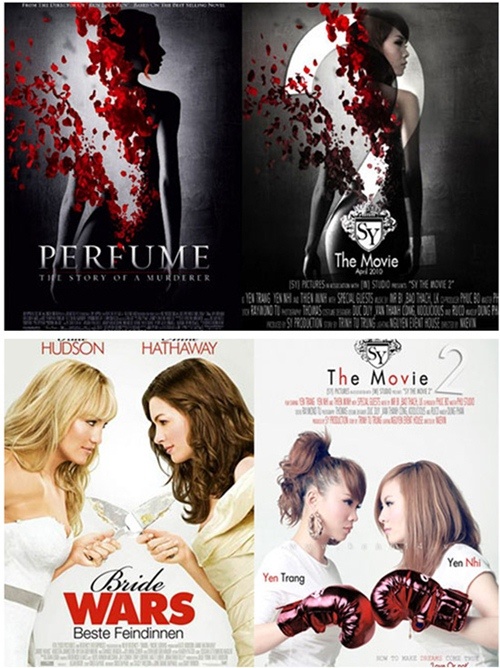 | Song Yến (hai chị em Yến Trang, Yến Nhi) từng gây dư luận khi đạo trắng trợn loạt poster cho phim ca nhạc của mình. |