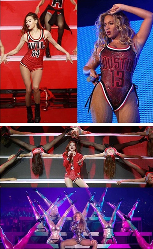 | Bên cạnh vụ lùm xùm Biển đen im lặng của fan Mỹ Tâm dành cho Hà Hồ thì màn live của cô trên sân khấu The Voice còn vướng phải nghi án đạo biểu diễn Beyoncé. |