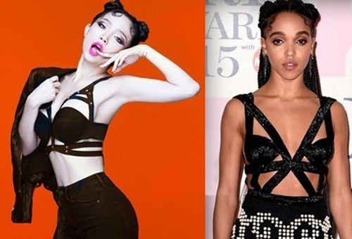 | Tóc búi củ tỏi cùng những lọn xoăn ấn tượng ở mái, bratop cắt xẻ mạnh tay mang phong cách chiến binh giúp Tóc Tiên lột xác đầy dị biệt trong một bộ ảnh nhưng trông cô không khác hình ảnh của nữ ca sĩ FKA Twigs là bao. Điều đáng nói chính bạn gái của Robert Pattinson là người khởi xướng xu hướng bất ngờ gây sốt này và nó cũng trở thành thương hiệu của cô. Đáp lời, Tóc Tiên đưa ra hình ảnh nữ ca sĩ Dara (2NE1) và Rita Ora để minh chứng việc cô không là người duy nhất theo đuổi xu hướng này. |