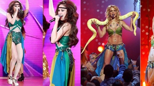| Đầu năm 2015, Bảo Thy xuất hiện trên sân khấu Cặp đôi hoàn hảo với hình ảnh mái tóc xoăn, chiếc áo bra, vạt dây vắt chéo, quần chẽn và phần vải tua rua bên hông được cho là sao chép lộ liễu với Công chúa nhạc Pop Britney Spears hồi lễ trao giải VMAs 2001. |