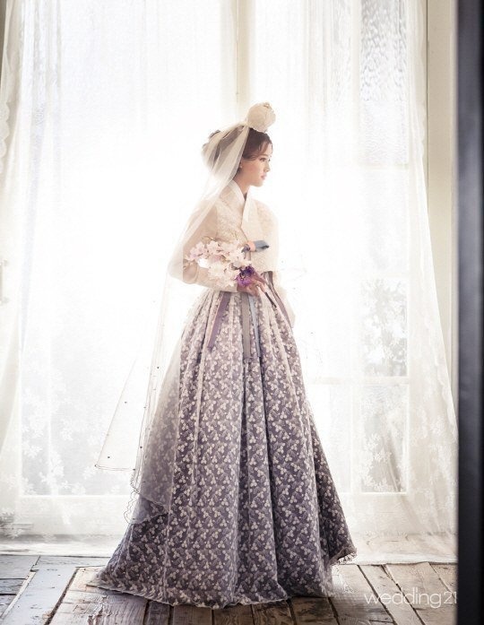 Kiều nữ Nam Bo Ra khác lạ với váy cưới mang phong cách truyền thống của người Hàn trong dịp đầu xuân.