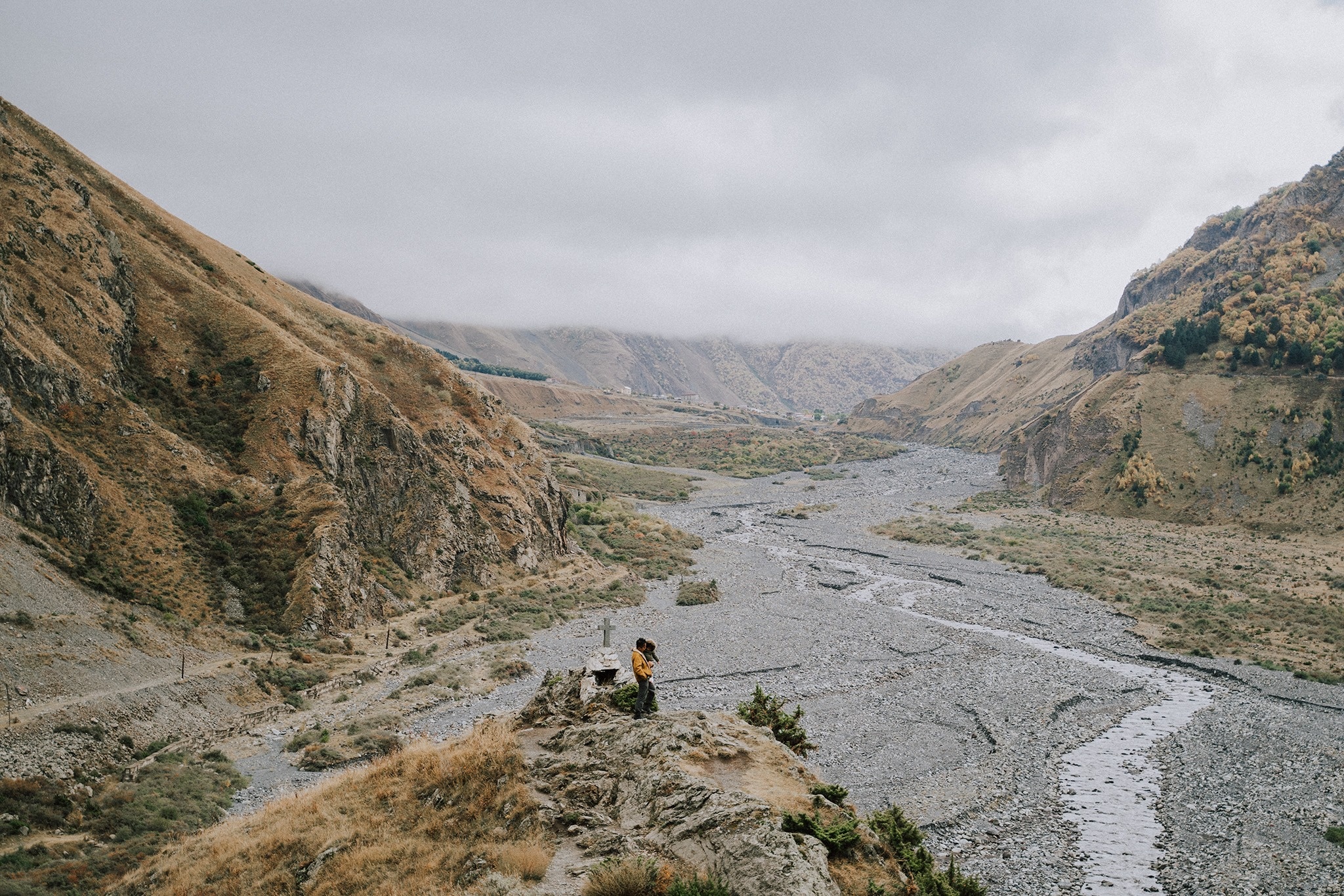 Lần đầu tiên đi nhà xe di động lại mang theo cô con gái gần 2 tuổi đã đem đến cho gia đình tôi nhiều kỷ niệm và cảm xúc đáng nhớ. Như những đứa trẻ chập chững học cách thế giới vận hành, người lớn chúng ta sau mỗi lần xê dịch lại mở rộng tầm nhìn về thế giới thêm một chút. Tôi hiểu rằng đôi khi sống không có kế hoạch hay chệch kế hoạch, chiều hôm nay mới quyết mai ở đâu cũng chẳng sao cả. Tôi hiểu rằng giữa cuộc sống hiện đại thường ngày với vòng quay bất tận, đôi khi mình cần lười biếng. Nằm cả ngày trên giường, chân đi hai lớp tất ôm nhau co ro vì lạnh, ngắm đỉnh Kazbek phủ tuyết trắng. Lúc ấy bên ngoài nhà xe không có gì cả ngoài dòng sông Terek chảy rì rào suốt đêm và ngôi làng bỏ hoang xa xa ở thung lũng Truso. Giữa cuộc sống đô thị ngập tràn sức sống, âm thanh, sự hứng khởi, năng lượng mình có thể bị quá tải bởi âm thanh bên ngoài mà bỏ quên mất âm thanh trong cơ thể mình. Ở đây, những hôm địu con trên vai, nắm tay nhau đi giữa núi rừng yên ắng, tôi chẳng thèm mang máy ảnh, hoà mình vào thiên nhiên, chỉ nghe thấy gió thổi rì rào, văng vẳng xa xa tiếng kêu be be của một đàn gia súc nào đó. Đôi khi, tôi đi sâu hẳn trong lòng núi, yên tĩnh đến nỗi có thể nghe thấy nhịp tim đập, tiếng thở gấp gáp, máu chảy len lỏi qua động mạch gần tai, xúc cảm, năng lượng và tiếng nói thầm lặng trong đầu.