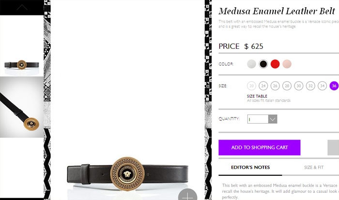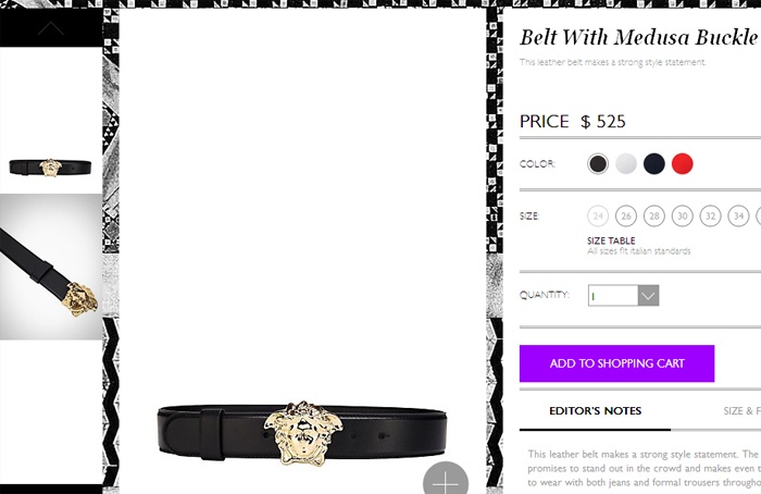 | Chiếc thắt lưng này được bày bán trên trang Versace với giá $525, tương đương hơn 11 triệu đồng. |