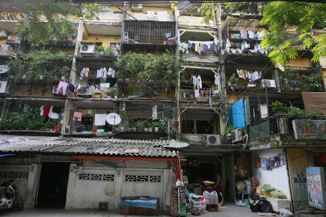 | Tại khu tập thể C8 Giảng Võ tình trạng xuống cấp nguy hiểm hơn. |