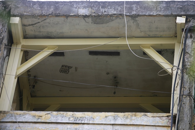 Ngày 30/6, UBND TP.Hà Nội đã yêu cầu Sở Xây dựng và UBND Quận Ba Đình xử lý 2 công trình nguy hiểm trên địa bàn. Theo đó, đầu tháng 7 cơ quan chức năng đã dùng những giá thép để làm giá đỡ, ngăn sự xô lệch của tường |