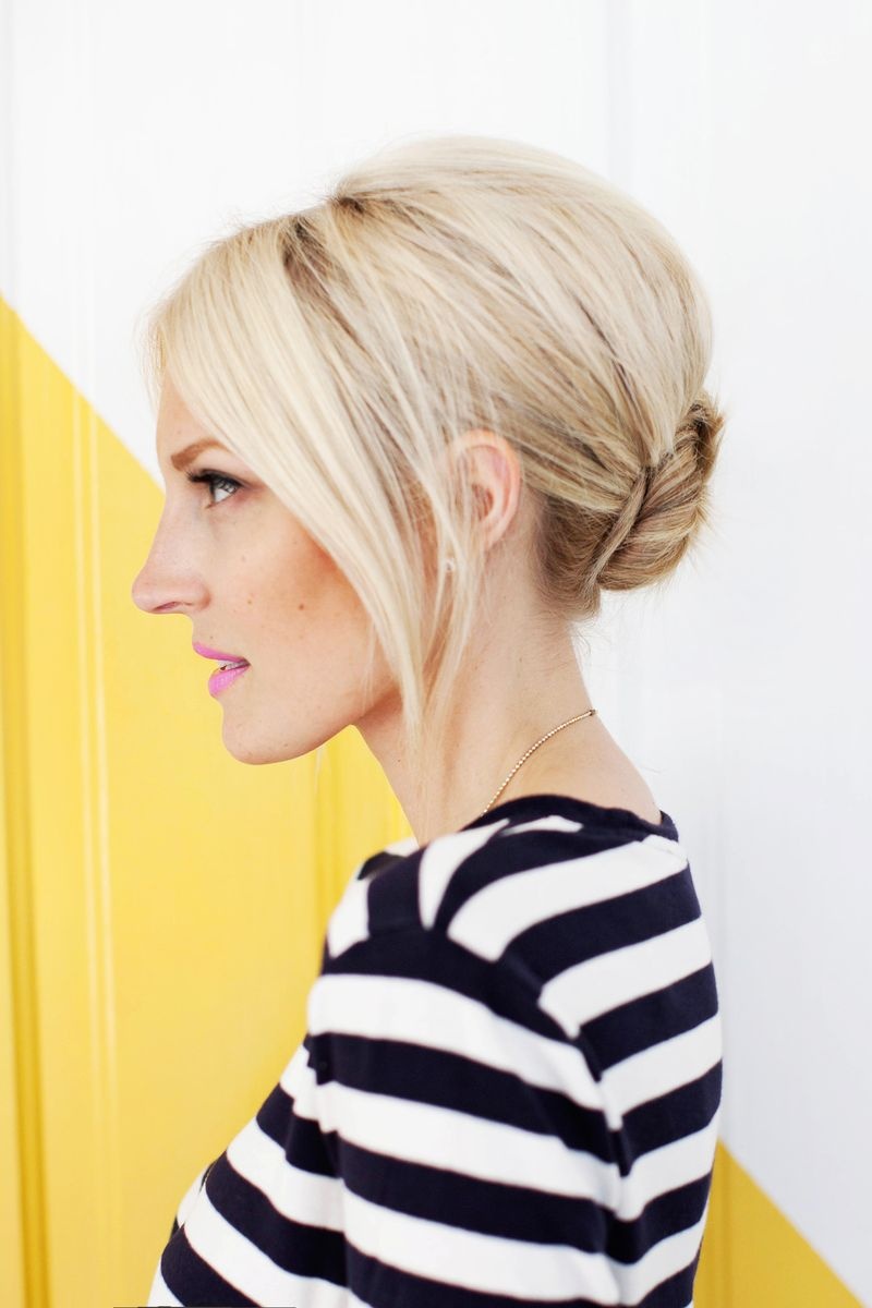 | 1. Tóc búi vấn sang trọng: Kiểu tóc phù hợp với những mái tóc dài ngang vai và sẽ đẹp hơn nên bạn để chút mái xéo để tăng vẻ duyên dáng cho gương mặt. |