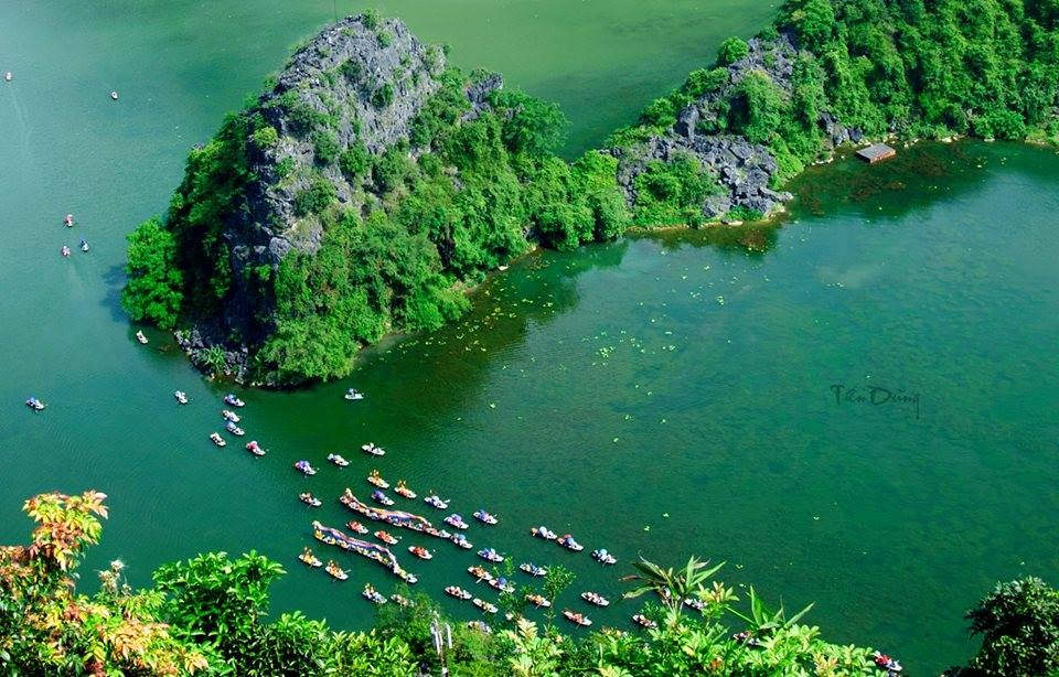 14h, bạn đi đi khu du lịch Tràng An (giá vé 150.000 đồng), với tổng thời gian tham quan 3-5 tiếng. Nơi đây là một vùng non nước, mây trời hòa quyện, đáy nước trong xanh soi bóng những vách núi đá trùng điệp. Nơi đây có 31 hồ, đầm nước được nối thông bằng 48 hang động đã được phát hiện, trong đó có những hang xuyên thủy dài 2 km như hang Địa Linh, hang Sinh Dược, hang Mây...