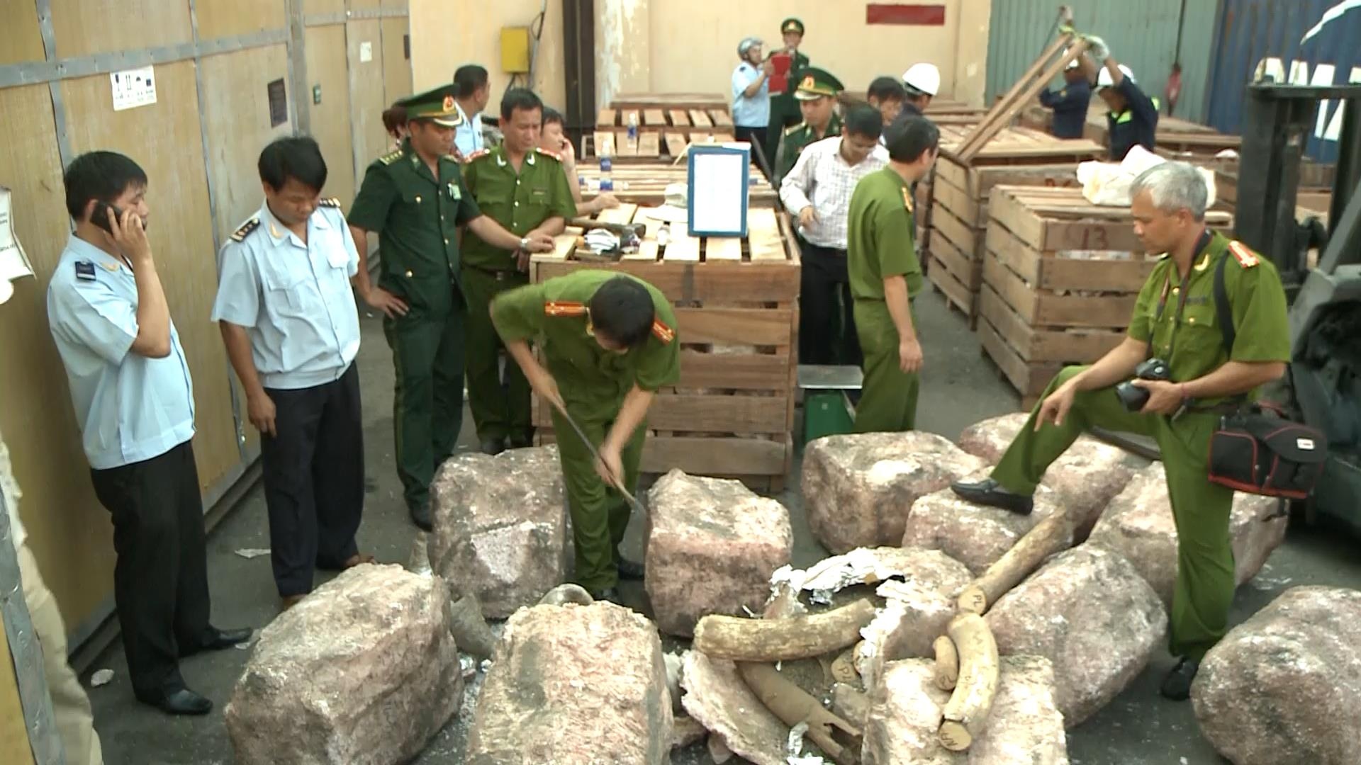Hơn 2 tấn ngà voi nhập lậu bắt giữ tại cảng Tiên Sa (Đà Nẵng) có giá trị cả trăm tỷ đồng. Đây là hàng cấm do một công ty ở Đà Nẵng chuyển về từ Châu Phi.