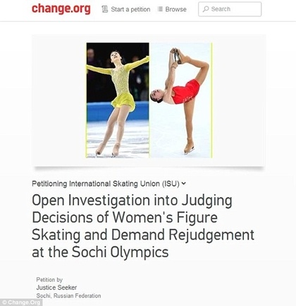 Tuy nhiên, kết quả này đã chịu sự phản ứng mạnh mẽ của gần 2 triệu người khi họ đồng thời ký vào bản kiến nghị có tên “Mở cuộc điều tra về việc đánh giá các quyết định ở môn trượt băng nghệ thuật dành cho nữ và yêu cầu xem xét lại kết quả ở Thế vận hội mùa đông Sochi” được lập trên trang web Change.org - website cho phép mọi người phát động những chiến dịch hành động xã hội trên mạng Internet. Chủ nhân của bản kiến nghị này là người dùng mang tên Justice Seeker.