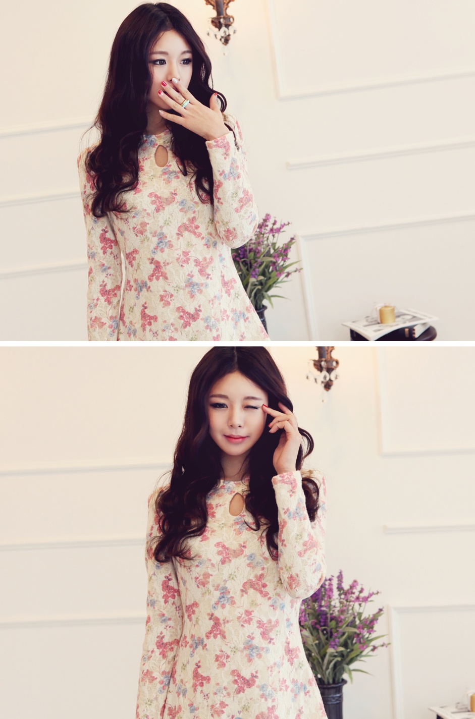 Những bộ đầm liền với kiểu dáng nhẹ nhàng sẽ được các bạn gái rất ưa thích. Phong cách trang điểm đi kèm với mẫu đầm hoa này cũng thiên về xu hướng tự nhiên với điểm nhấn là đôi môi tươi hồng.