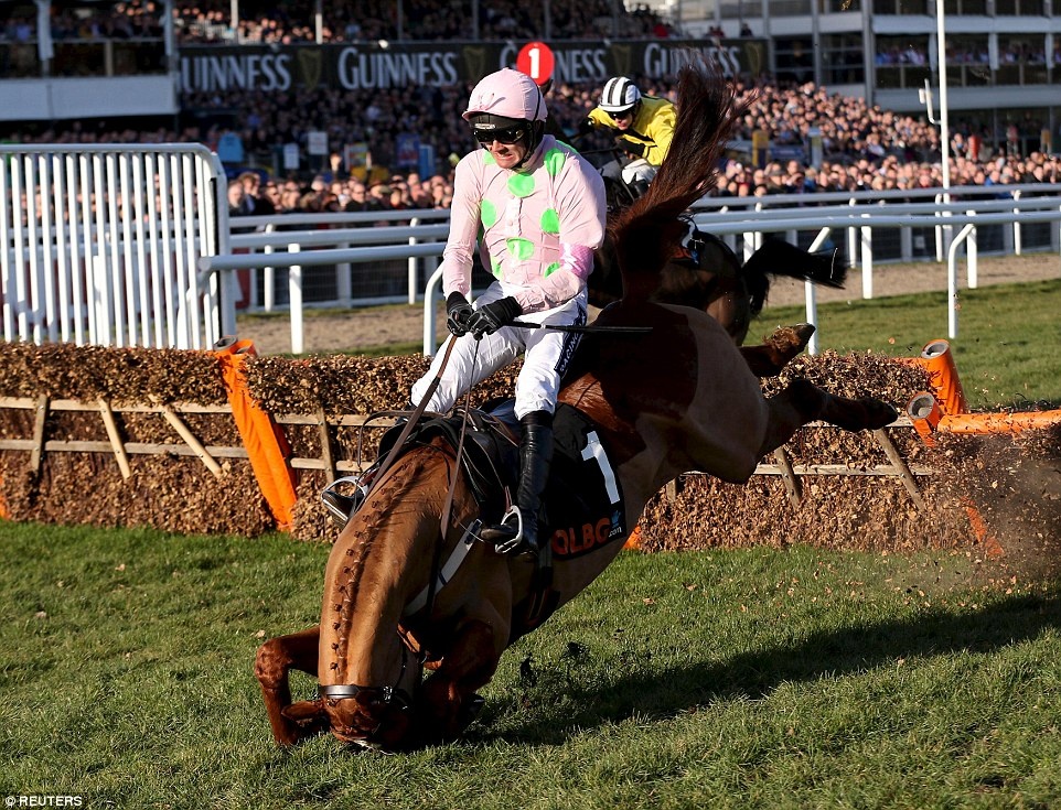 Con ngựa của Ruby Walsh ngã cắm đầu vì tiếp đất không tốt sau cú vượt rào tại lễ hội Cheltenham Festival ở Cheltenham, Anh, hồi tháng 3.